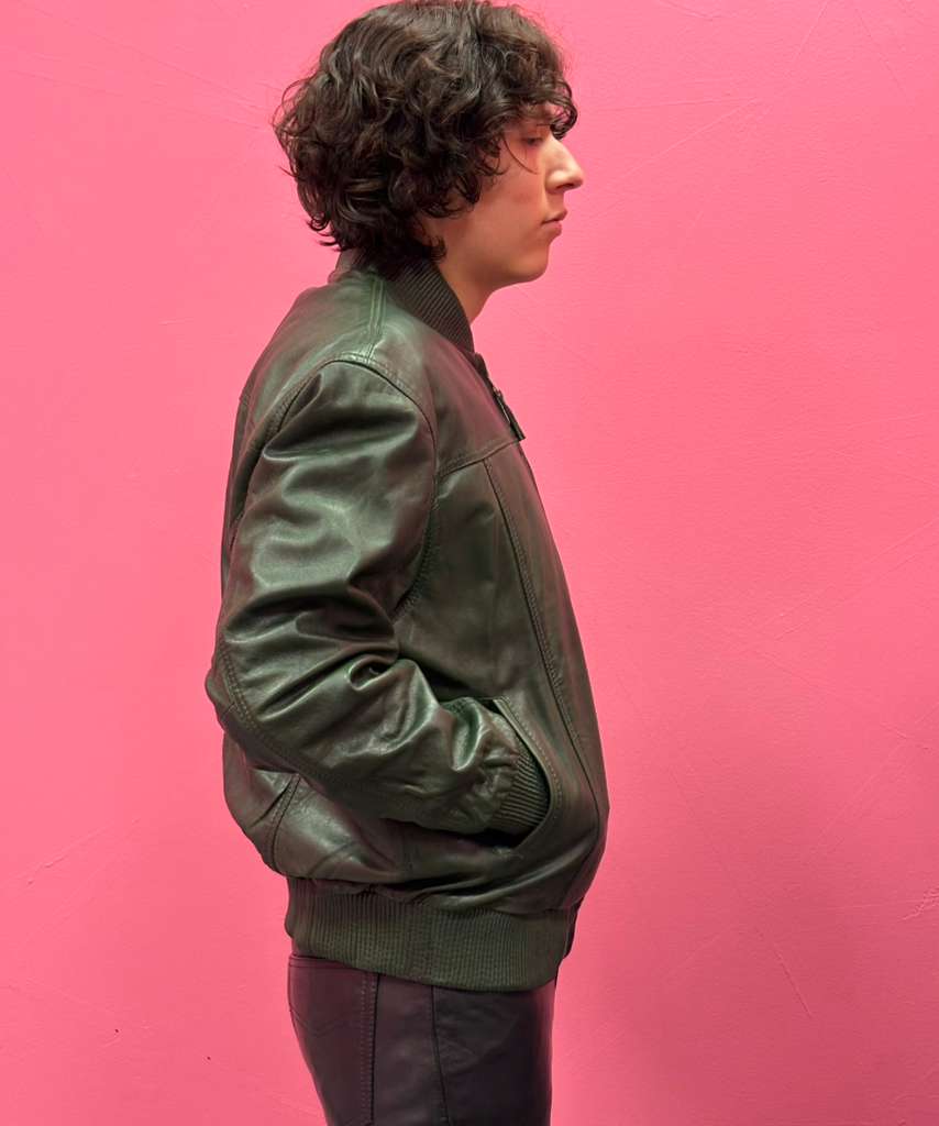 Elevate your style with our Men’s Green Leather Baseball Bomber Jacket, crafted from premium genuine leather for a durable and bold look. Featuring a classic baseball bomber design with ribbed cuffs, hem, and a sturdy front zipper, this jacket delivers both comfort and style. Perfect for casual wear, streetwear, or layering in cooler weather, it’s the ultimate green leather bomber jacket for men.