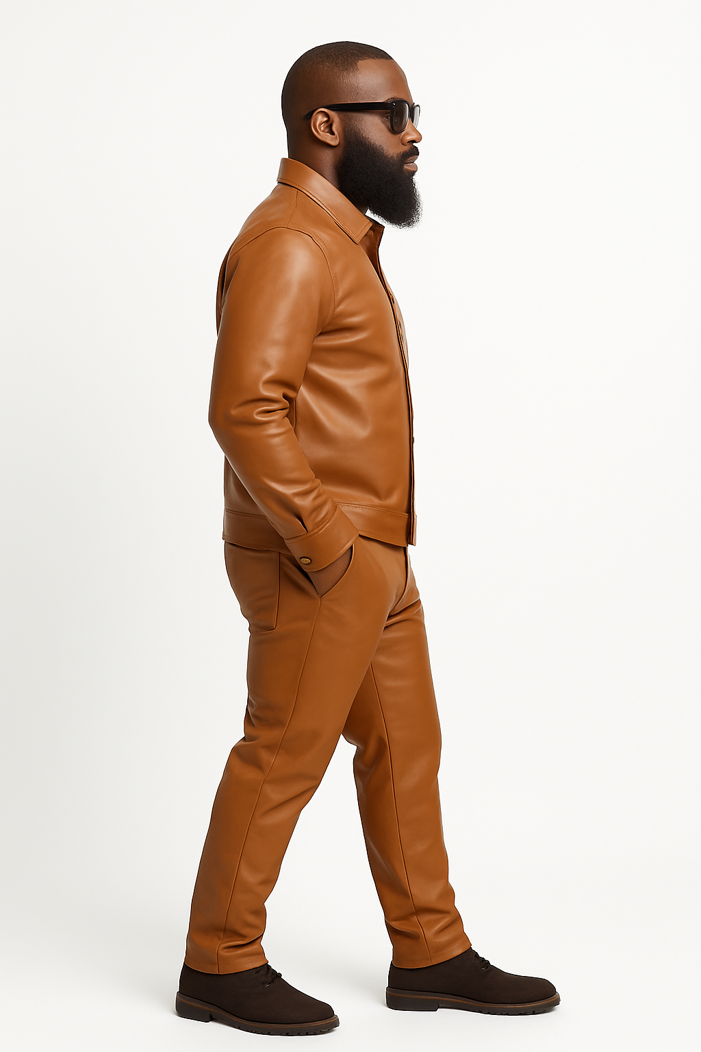 Men's Luka Leather Shirt And Pants Set [Saddle Brown]