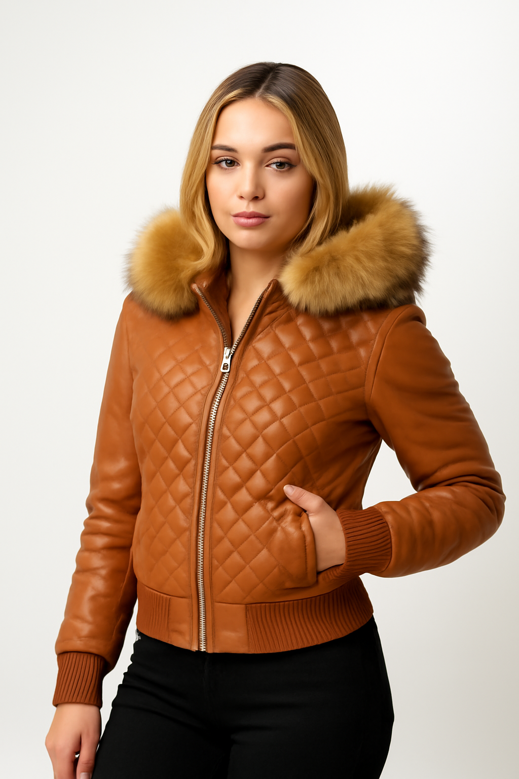 Women's Lucas Jacket With Premium Fox Fur Hood [Crystal]
